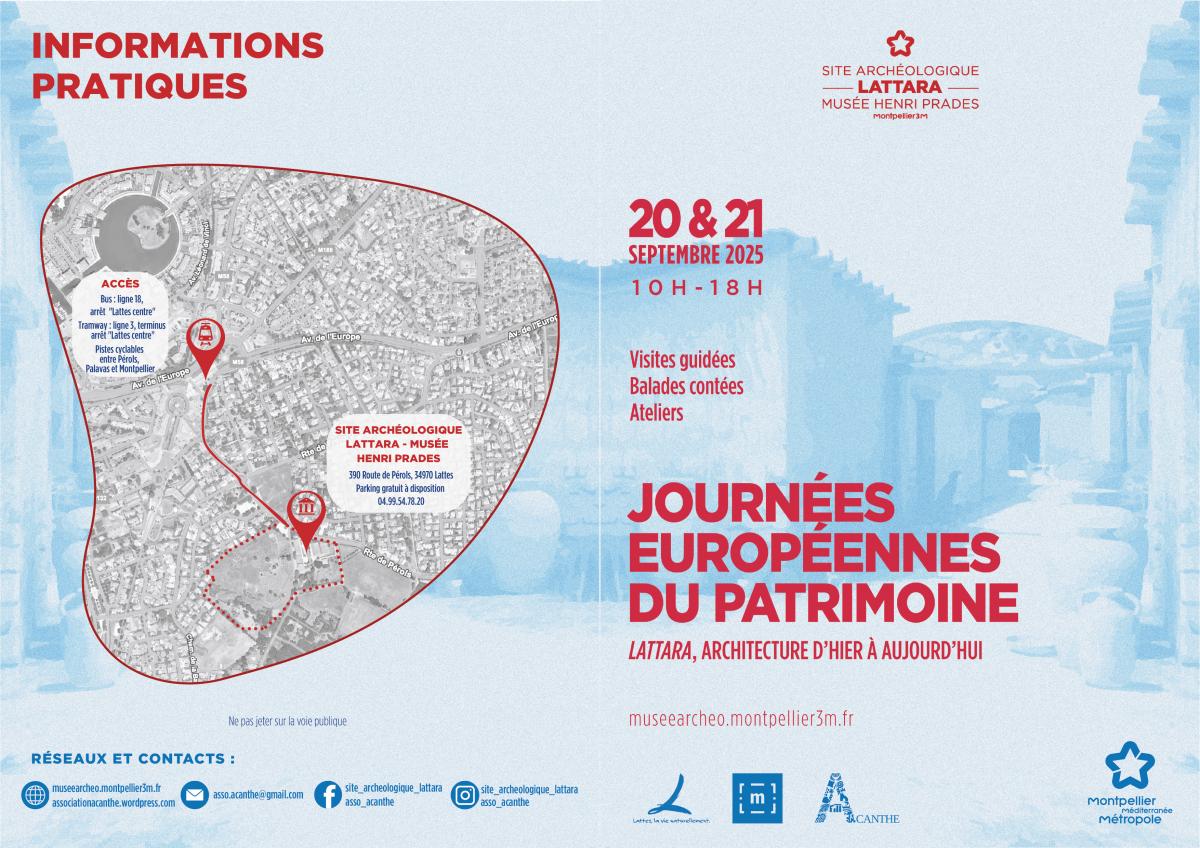 Le samedi 20 et le dimanche 21 septembre 2025, de 10h à 18h, à l’occasion des Journées Européennes du Patrimoine, Montpellier Méditerranée Métropole s’associe à l’association Acanthe qui réunit les étudiants du Master "Valorisation et Médiation des Patrimoines" de l’Université Paul Valéry de Montpellier pour faire découvrir le site archéologique Lattara-musée Henri Prades et son patrimoine architectural.