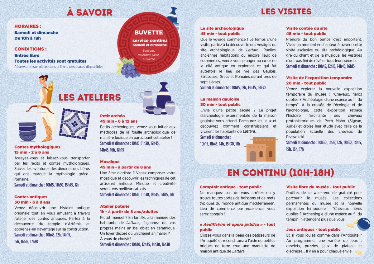 Un week-end d’animations, ateliers et visites... en famille, en solo ou entre amis, venez voyager au cœur des vestiges et de l'histoire de l'antique cité de Lattara.